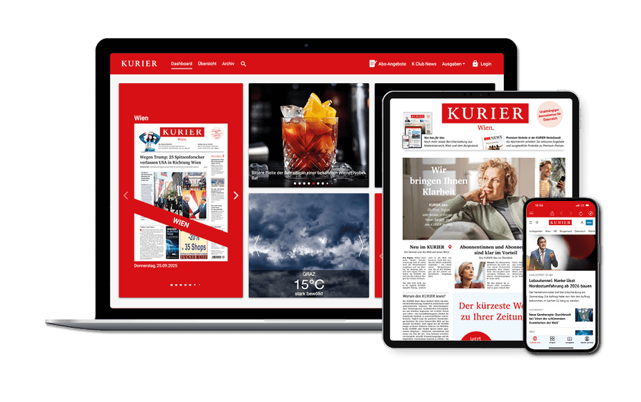 - KURIER-ePaper, die Zeitung digital, auf bis zu 5 Geräten gleichzeitig